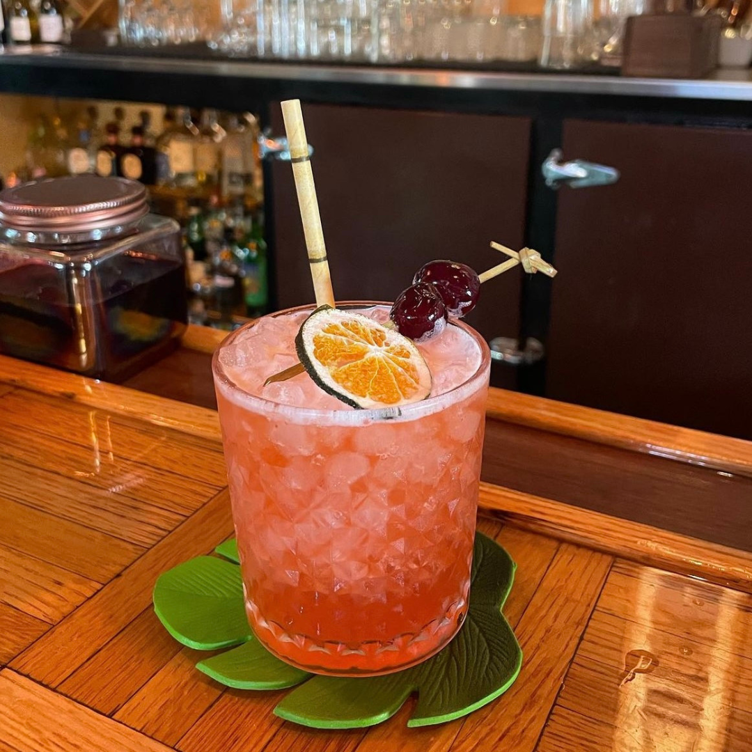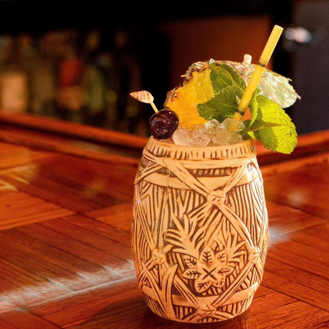 Dark rum, fresh juice, herbs and spices, Plantation O-F-T-D over proof rum.